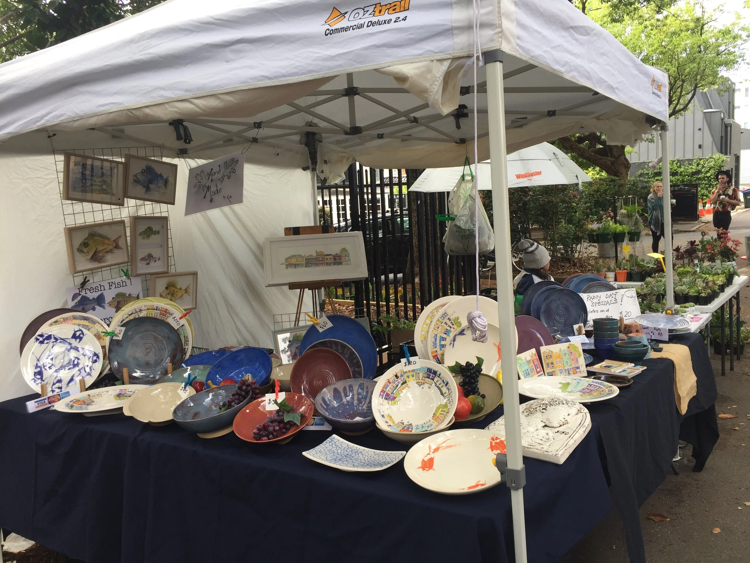 I researched through archeological sites to find designs for plates. I had just built my own slab roller from an internet design with all materials sourced from the local Bunnings hardware supplier. I cut plaster moulds using a crude vertical lathe technique. These designs were based on shards found across Europe, mainly ancient rubbish tips and wells. Earthenware was the clay due to access to a rudimentary kilns from a local school. Layered glazes created unique designs but earthenware was not strong enough.. A refurbished kiln that would fire to stoneware became available and Midfire clays provided a durable and stronger medium. I continued to fire large earthenware platters as I had accumulated many glazes to fire at low temperatures